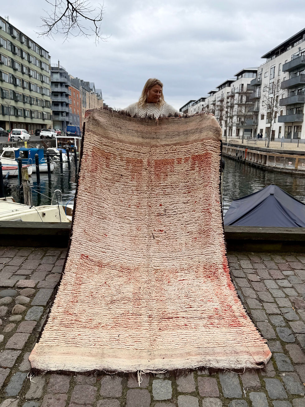 Unika one of a kind Berbertæppe i 100% Berber uld, håndplukket af Charlotte på hendes rejser til Marrakesh.